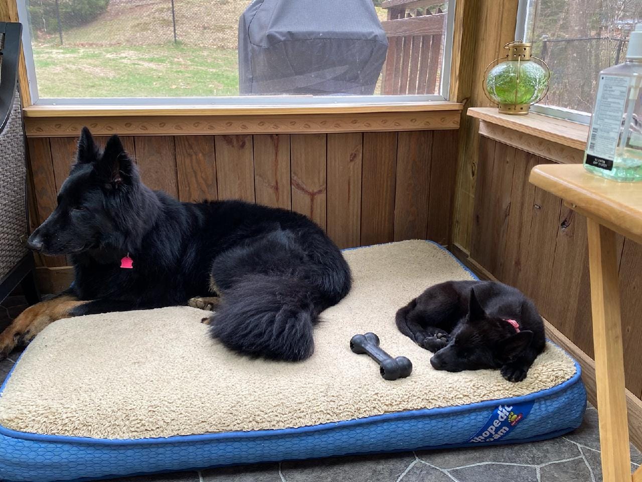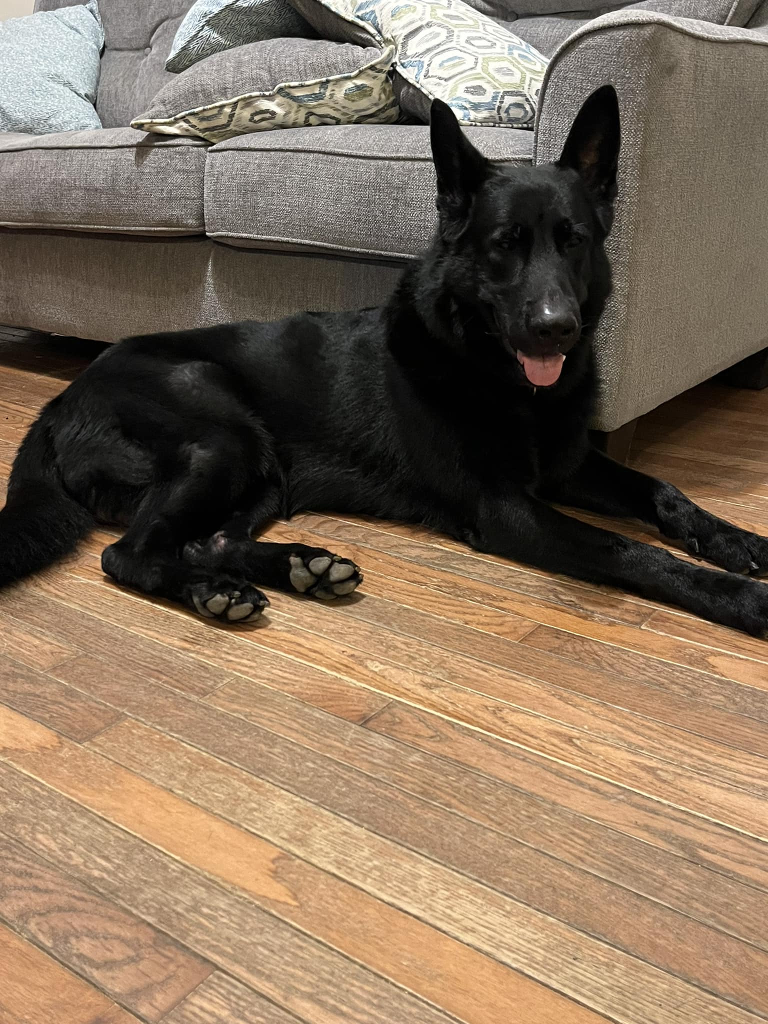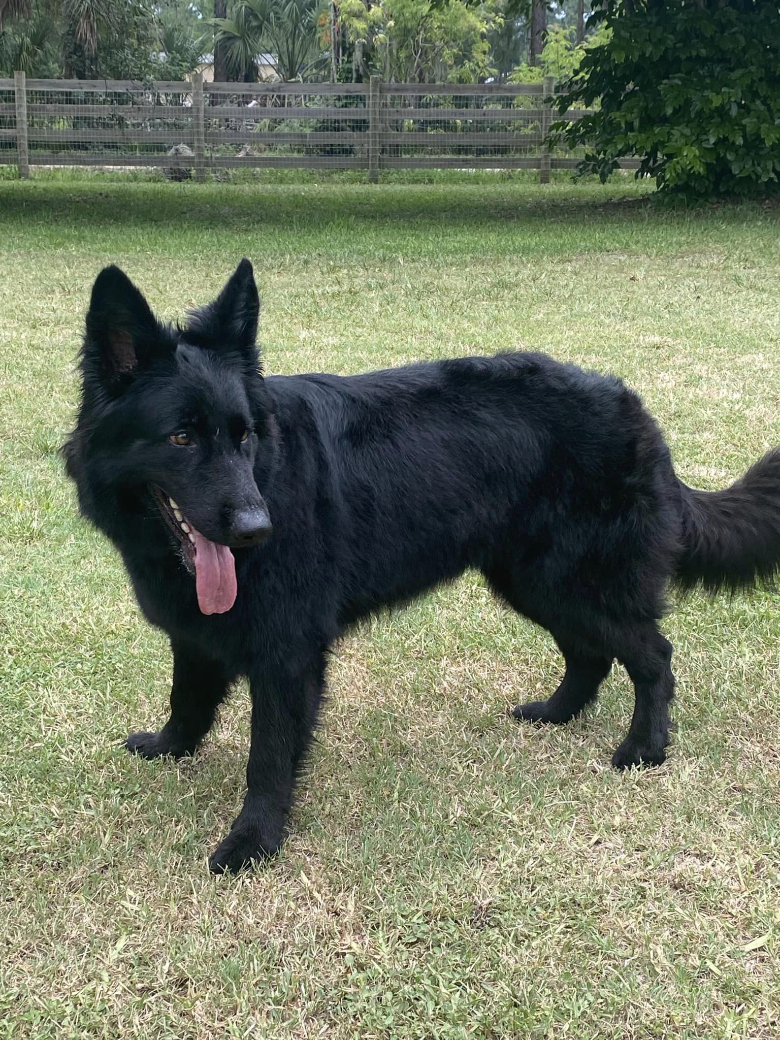 Razz is our athletic dog!! For the last 2 years (2020 & 2021) she’s been holding her 2nd place spot in the AKC event of FastCat!!! Razz comes from an old line of DDR dogs mostly East German she has a great attention and focus. Loves to stay busy; as if you don’t give her a job she will find one.. for example racing every car, truck and especially motorcycles down the property line.. and I am sure at 31 mph she wins!! We love our razzamatazz!! She has a beautiful long coat and comes from 3 generations of excellent OFA hip ratings!!! OFA Excellent hips Normal elbows DM clear